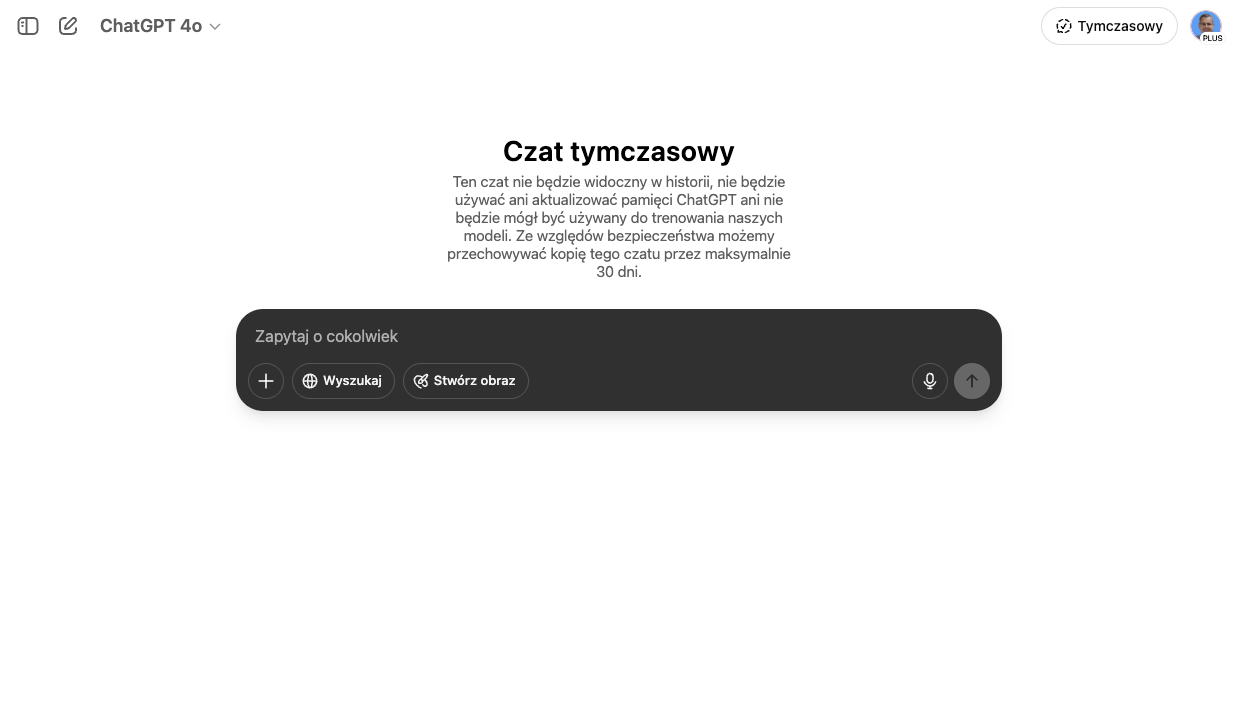 Tymczasowy Czat (ang. Temporary Chat) to funkcja ChatGPT, która pozwala prowadzić rozmowę bez zapisywania jej w historii ani wpływania na pamięć modelu. Działa jak “tryb incognito” w przeglądarce. Jak działa? Kiedy warto używać? Bezpieczeństwo i poufność Używanie Tymczasowego Czatu zapewnia …